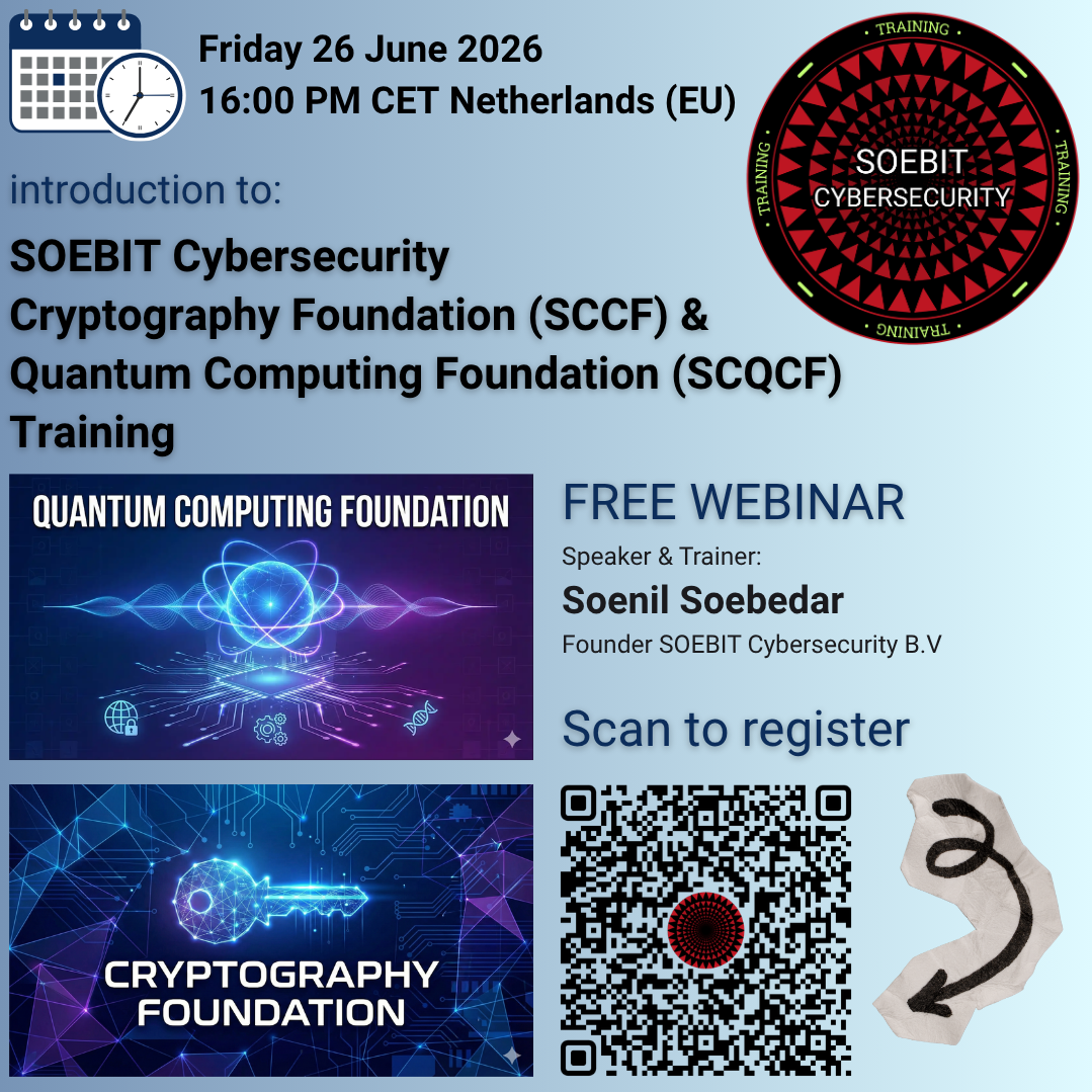 Free webinar about SOEBIT Cybersecurity Cryptography Foundation (SCCF) & Quantum Computing Foundation (SCQCF) 1 day trainings